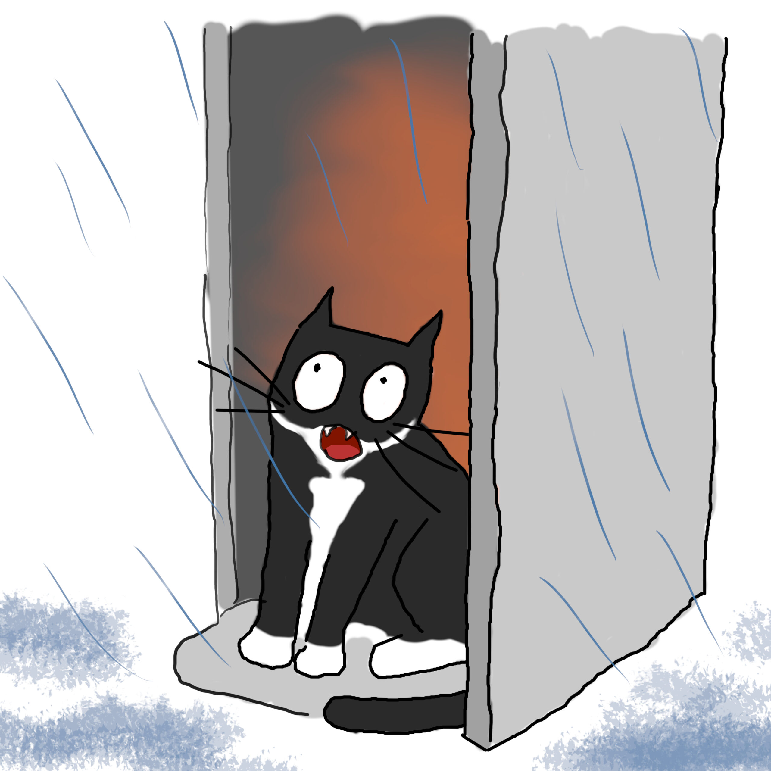 Oscar's (Berkshire, UK) weather forecast (sticking his head out the door while human waits patiently) determined that outside the kitchen door was too wet. To his utter shock and confusion, the weather forecast for outside the conservatory doors was also too wet! So Oscar took action: he yelled at his human.